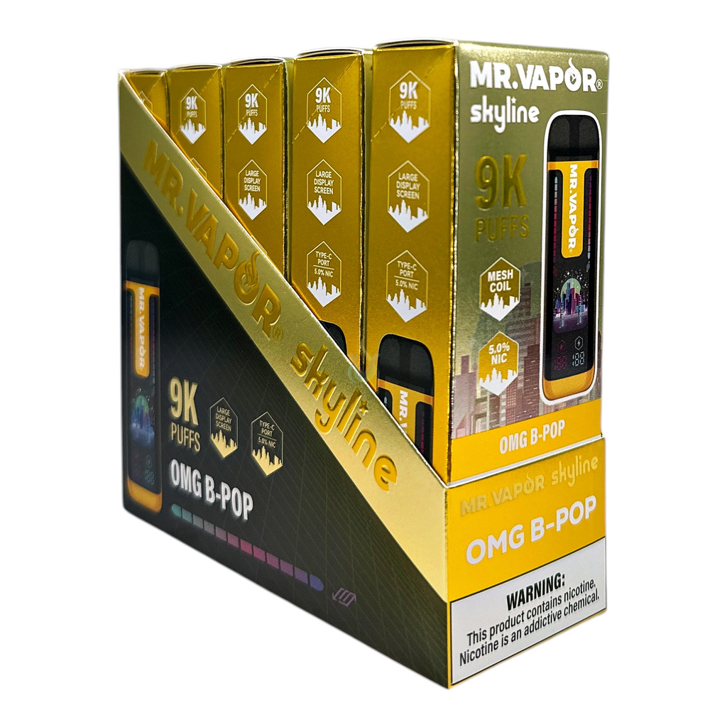 Enhance your product offerings with the Mr Vapor Skyline 9K Disposable Vape. Designed for high-volume sales and consistent performance, this disposable vape provides exceptional value for wholesale buyers. Its long-lasting battery and substantial e-liquid capacity ensure reliability, while a variety of popular flavors cater to diverse customer preferences.