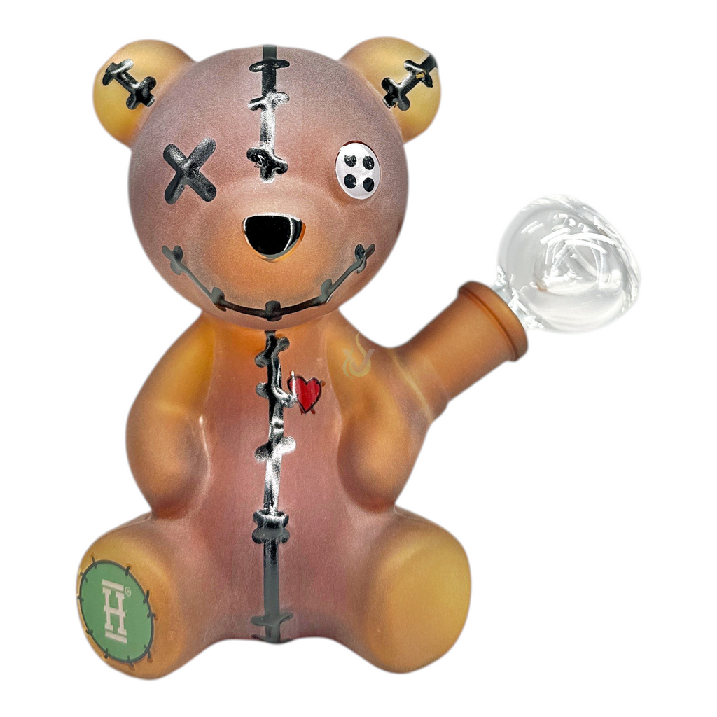 The Hemper 5.7 Inch Teddy Bear Water Pipe is a compact, glass water-filtration piece engineered for smooth, approachable performance in a uniquely playful form factor. Its frosted, amber-to-honey gradient finish and stitched teddy-bear motif deliver standout design, while the side-arm joint with a removable clear glass attachment supports straightforward, everyday use. At 5.7 inches tall, it balances easy handling with a stable, flat base for confident desktop sessions.