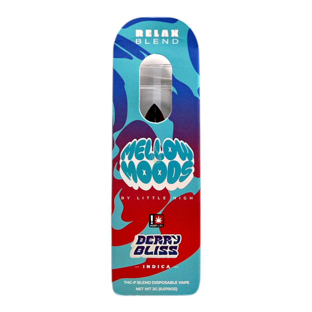 - Berry Bliss — Indica (2G Disposable, THCP blend, per packaging callouts)