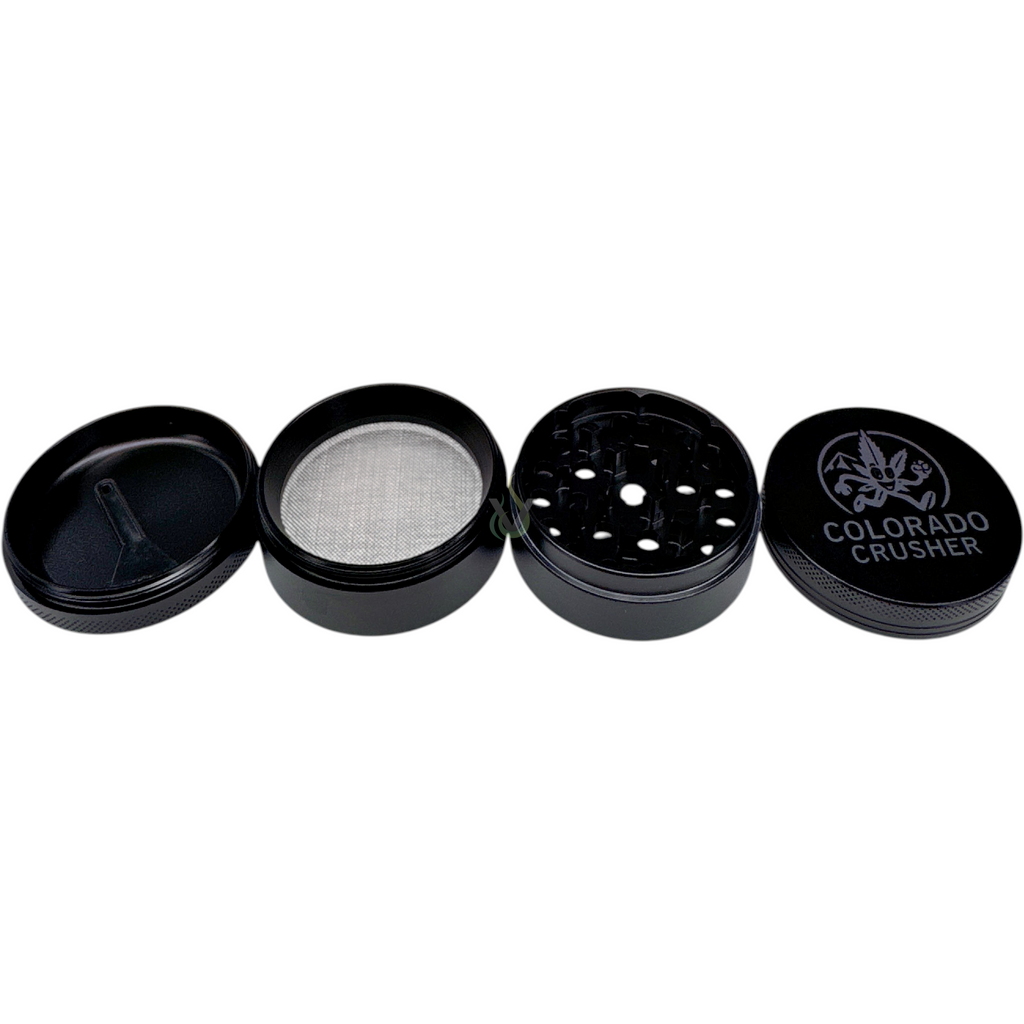 The Colorado Crusher 50mm Grinder is a compact, 4-piece, multi-chamber metal grinder engineered for dependable everyday use. Its palm-friendly 50mm diameter, precision-machined body, knurled grip bands, and laser-etched lid branding deliver a confident, smooth twist and a clean, professional look for smoke shops and specialty retailers. Designed for dry botanicals or culinary spices, it combines portability with a controlled, consistent grind experience.