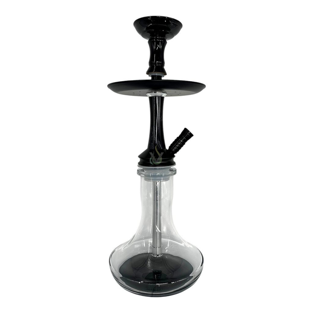 - Finish: Glossy black on bowl, stem, and hose port